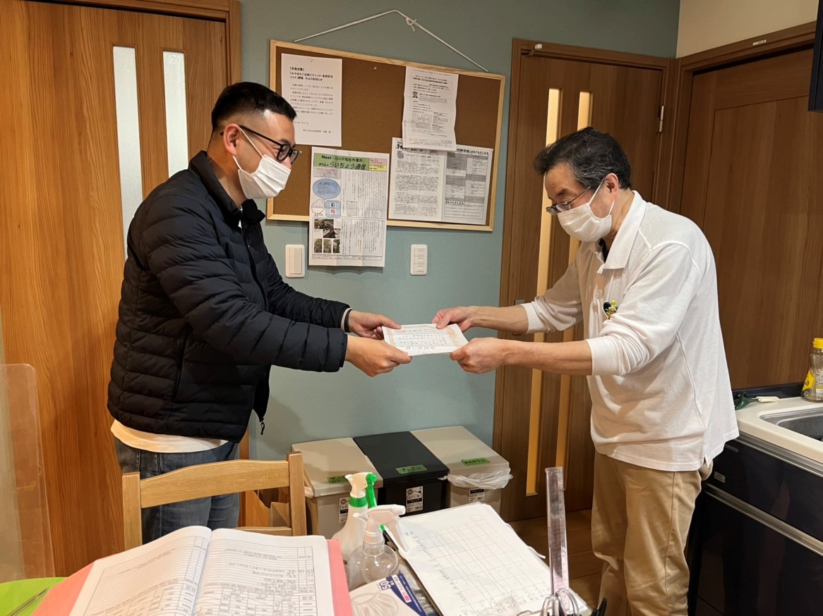 いつもグループホームでの様子などを細かく報告してくださるので、 支援者する側として適切な情報共有を頂き感謝しています。 こちら(日中活動事業所)からのご質問等についても、的確に回答やご対応いただけるので、 私たちも利用者さまに的確に対応が行えております。 今後も密に連携をしながら、利用者さまに作業して頂ける環境を作ってまいりますので これからもよろしくお願いします。